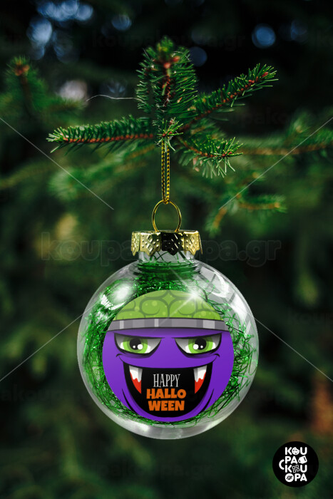 Halloween trick or treat Monster, Transparent Christmas tree ball ornament with green filling 8cm