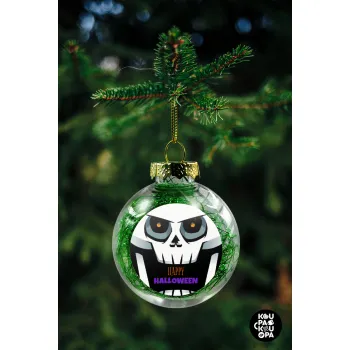 Halloween trick or treat Skeleton, Transparent Christmas tree ball ornament with green filling 8cm