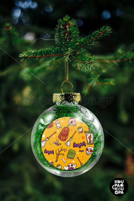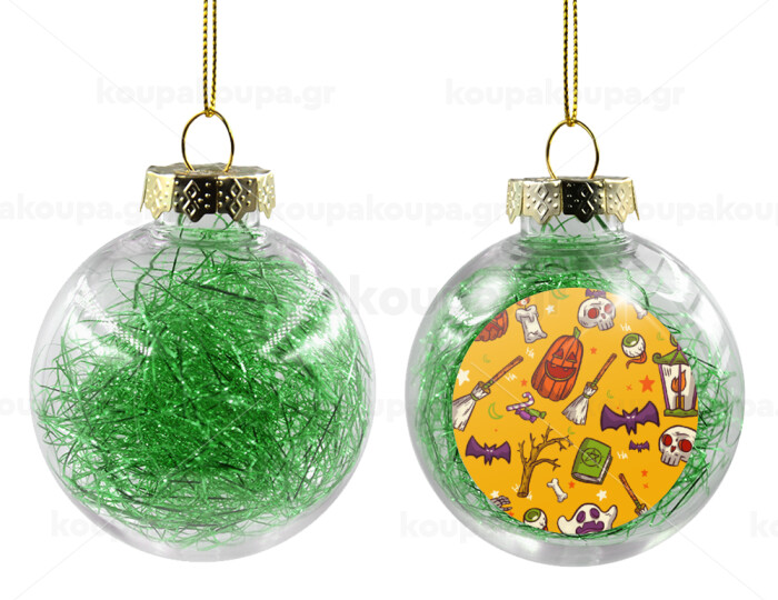 Happy Halloween, Transparent Christmas tree ball ornament with green filling 8cm