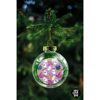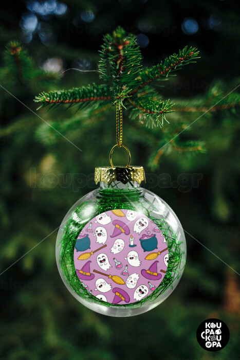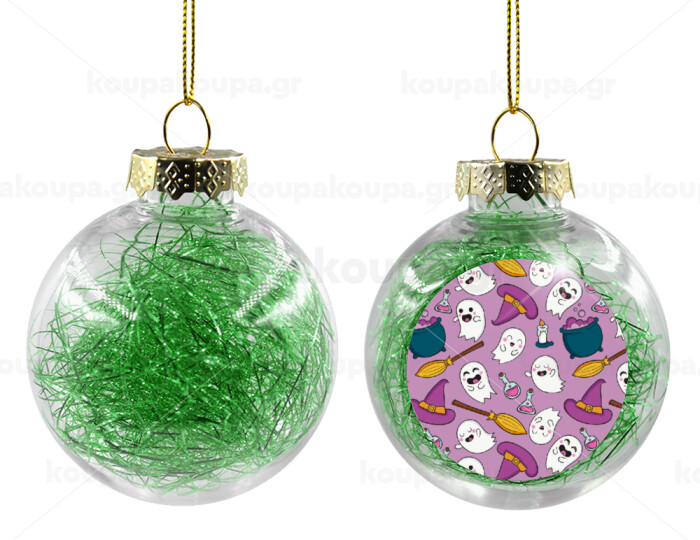 Happy Halloween pink, Transparent Christmas tree ball ornament with green filling 8cm