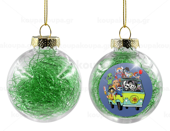 Stitch Halloween scooby car, Transparent Christmas tree ball ornament with green filling 8cm