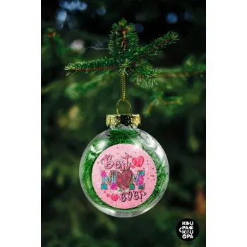 Best mom ever Mother's Day pink, Transparent Christmas tree ball ornament with green filling 8cm