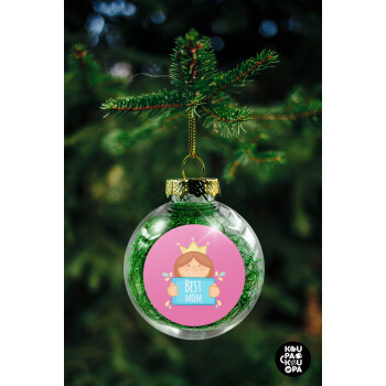 Best mom Princess, Transparent Christmas tree ball ornament with green filling 8cm