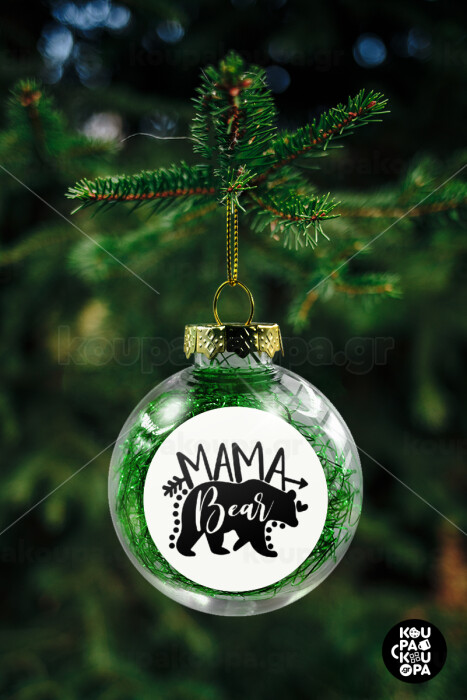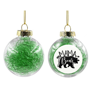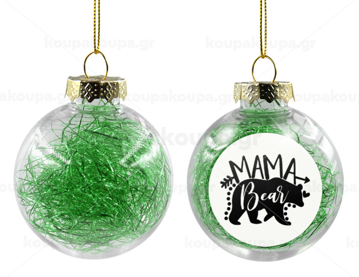 Mama Bear, Transparent Christmas tree ball ornament with green filling 8cm
