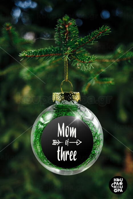 Mom of three, Transparent Christmas tree ball ornament with green filling 8cm