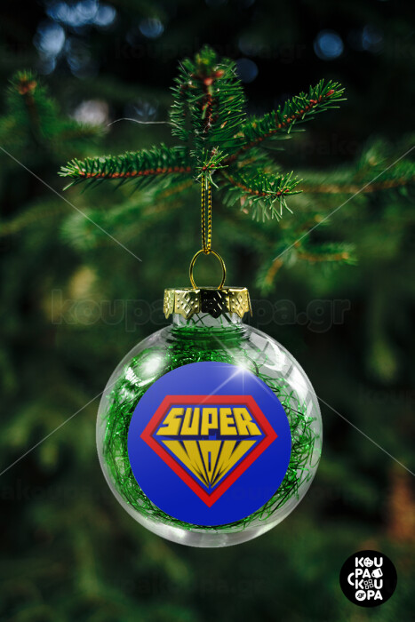 Super Mom 3D, Transparent Christmas tree ball ornament with green filling 8cm