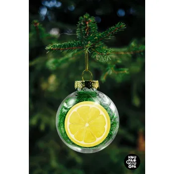 Lemon, Transparent Christmas tree ball ornament with green filling 8cm