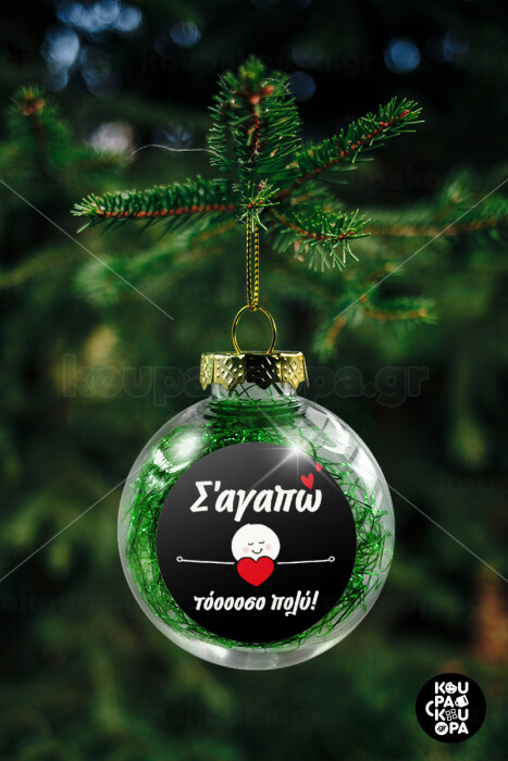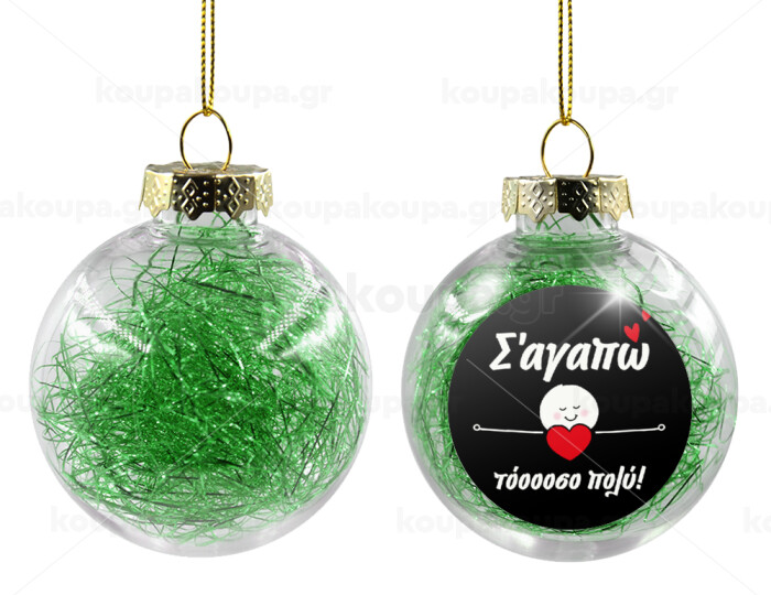 Σ΄αγαπώ τόοοοσο πολύ (Κορίτσι)!!!, Transparent Christmas tree ball ornament with green filling 8cm
