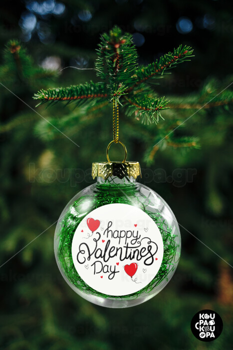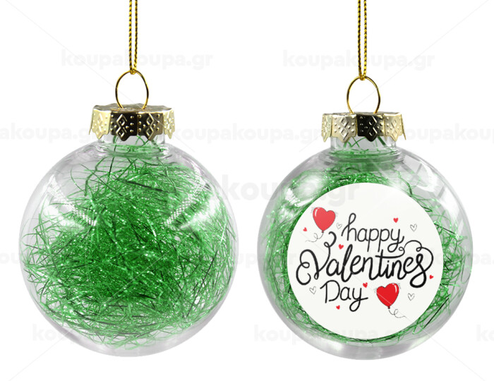 Happy Valentines Day!!!, Transparent Christmas tree ball ornament with green filling 8cm