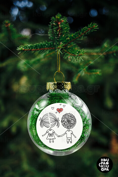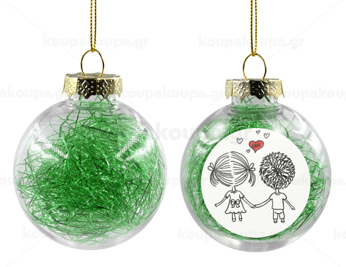 Hold my hand for ever, Transparent Christmas tree ball ornament with green filling 8cm