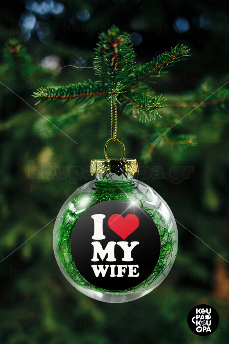 I Love my Wife, Transparent Christmas tree ball ornament with green filling 8cm