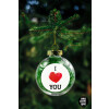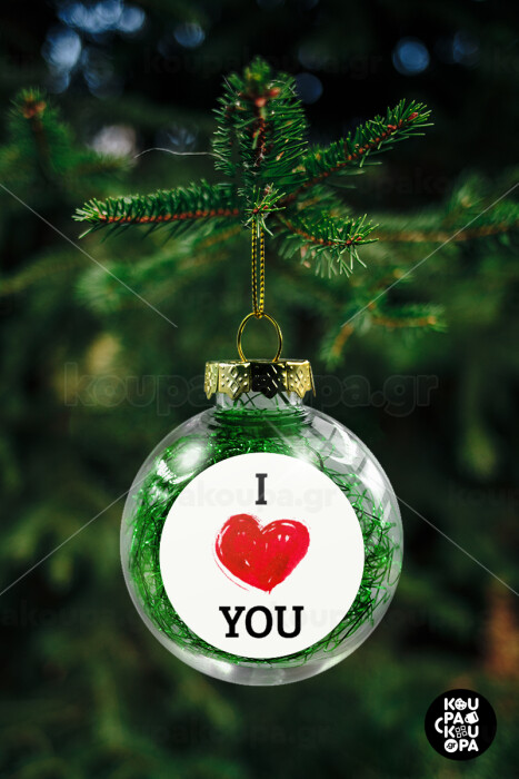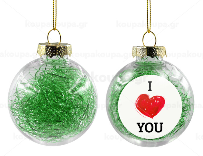 I Love You, Transparent Christmas tree ball ornament with green filling 8cm