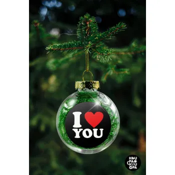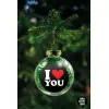 I LOVE YOU, Transparent Christmas tree ball ornament with green filling 8cm