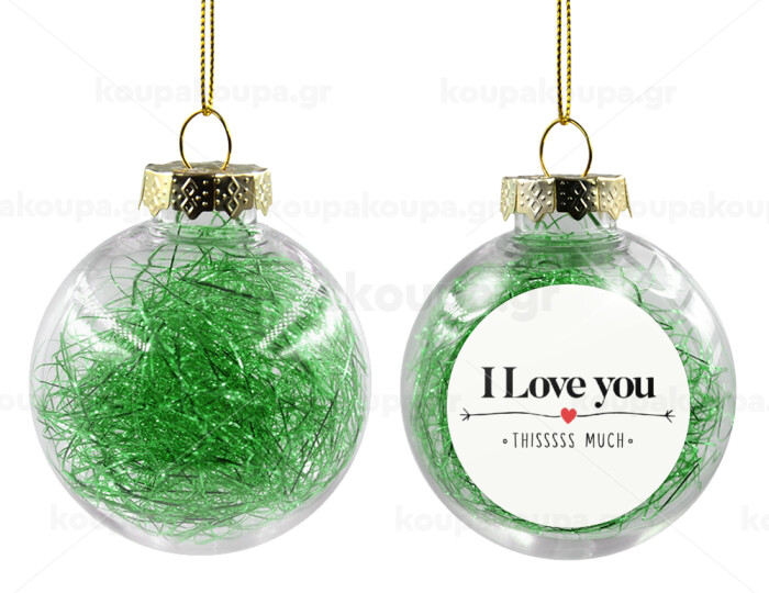 I Love you thisssss much, Transparent Christmas tree ball ornament with green filling 8cm