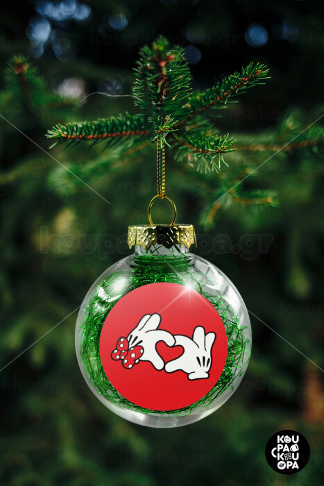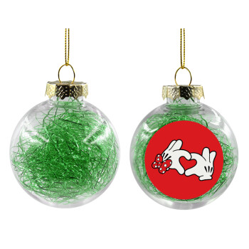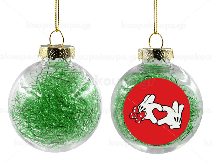 Love hands, Transparent Christmas tree ball ornament with green filling 8cm