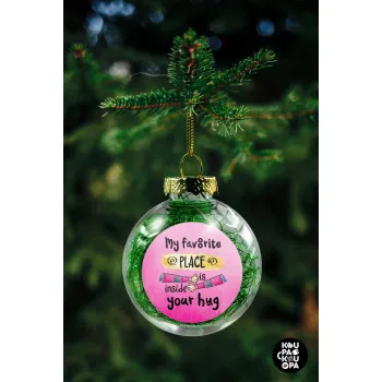 My favorite place is inside your HUG, Transparent Christmas tree ball ornament with green filling 8cm