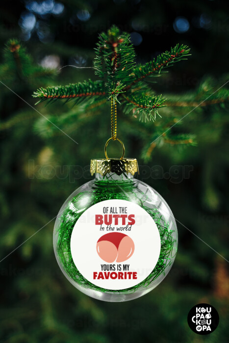 Of all the Butts in the world, your's is my favorite, Transparent Christmas tree ball ornament with green filling 8cm