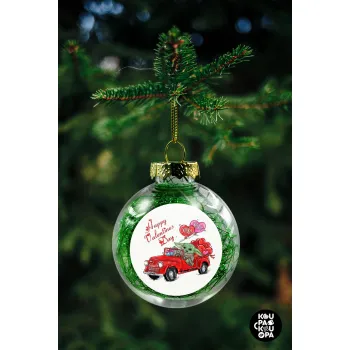 Yoda, happy valentines day (xoxo), Transparent Christmas tree ball ornament with green filling 8cm