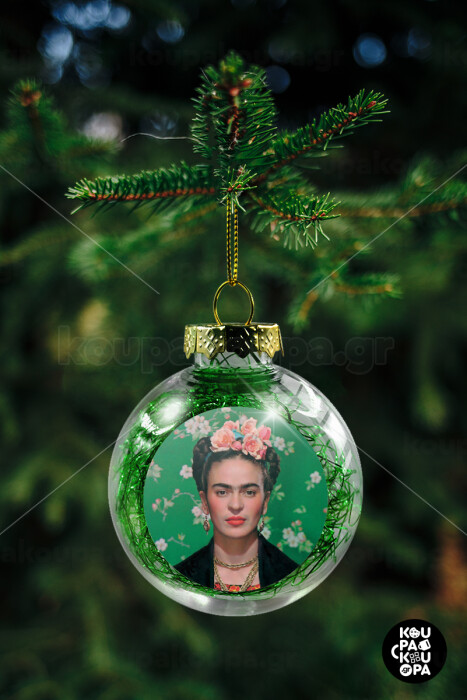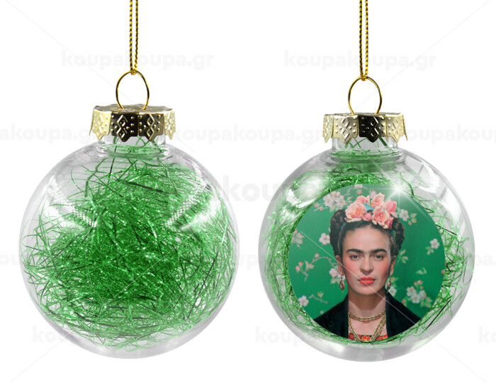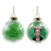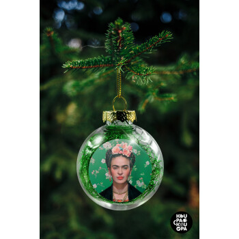 Frida Kahlo, Transparent Christmas tree ball ornament with green filling 8cm