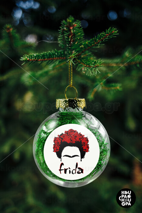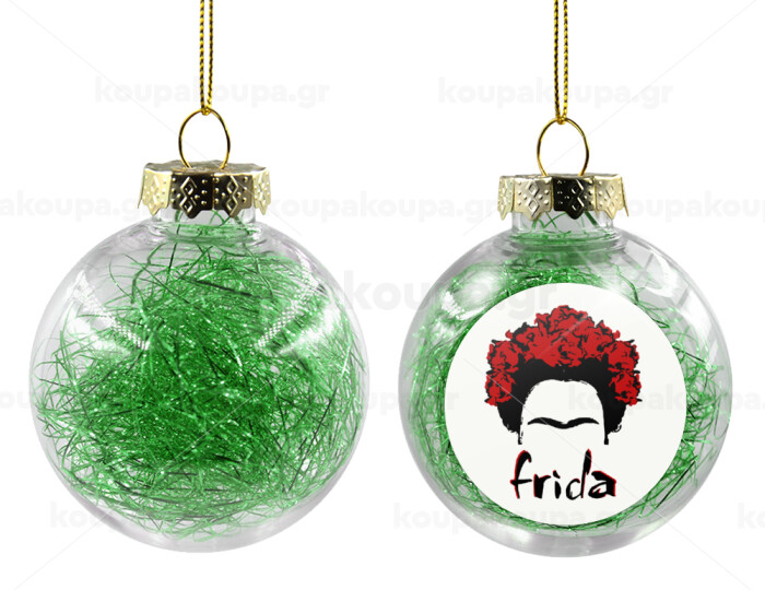 Frida, Transparent Christmas tree ball ornament with green filling 8cm