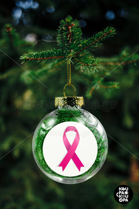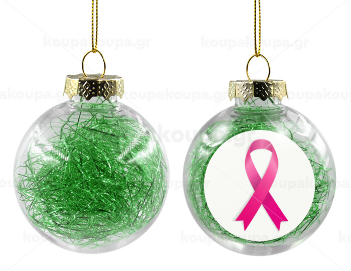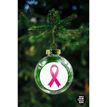 World cancer day, Transparent Christmas tree ball ornament with green filling 8cm