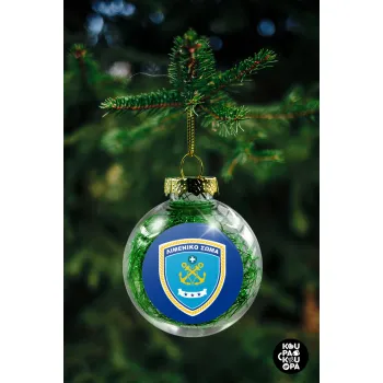 Hellenic coast guard, Transparent Christmas tree ball ornament with green filling 8cm