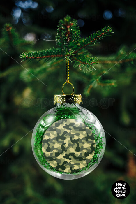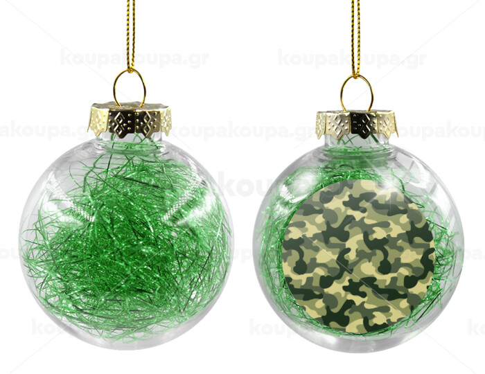 Army, Transparent Christmas tree ball ornament with green filling 8cm