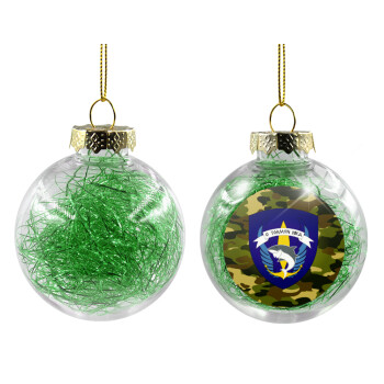 Hellas special force's shark, Transparent Christmas tree ball ornament with green filling 8cm