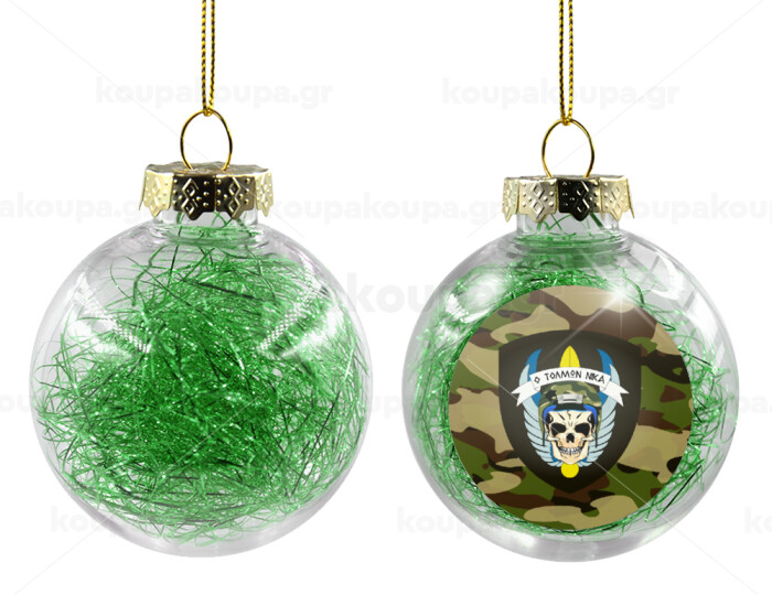 Special force, Transparent Christmas tree ball ornament with green filling 8cm