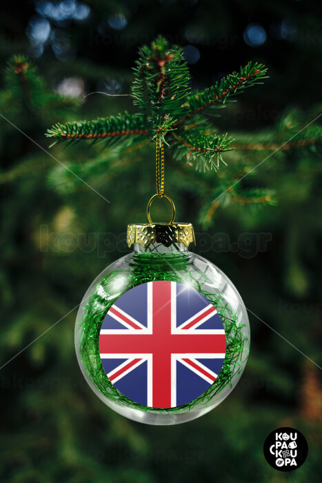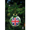 UK Flag, Transparent Christmas tree ball ornament with green filling 8cm