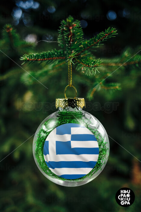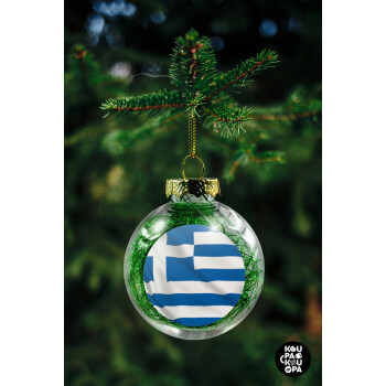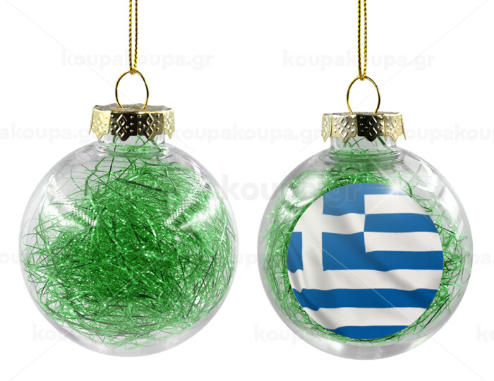 GREEK Flag, Transparent Christmas tree ball ornament with green filling 8cm