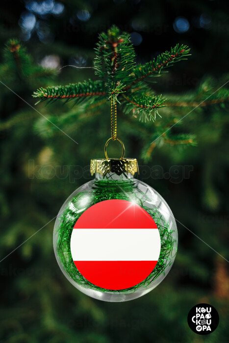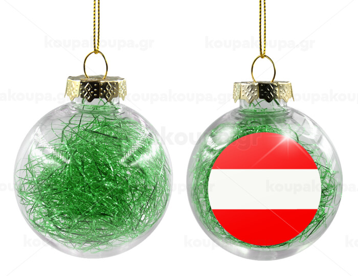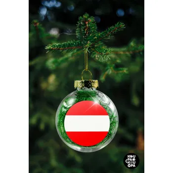 Austria flag, Transparent Christmas tree ball ornament with green filling 8cm