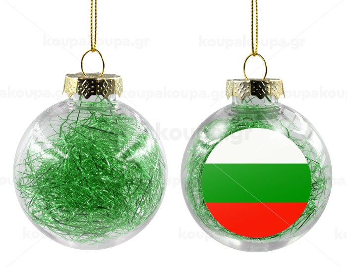 Bulgaria flag, Transparent Christmas tree ball ornament with green filling 8cm