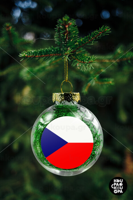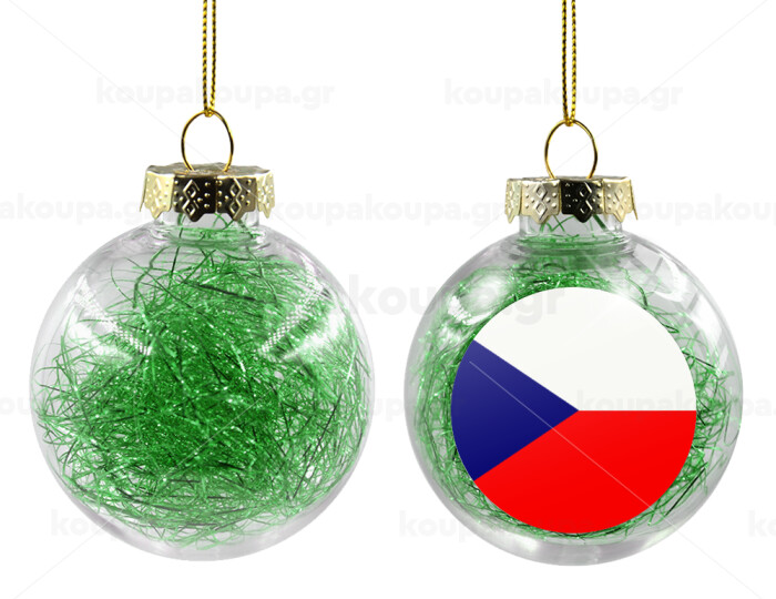 Czechia flag, Transparent Christmas tree ball ornament with green filling 8cm