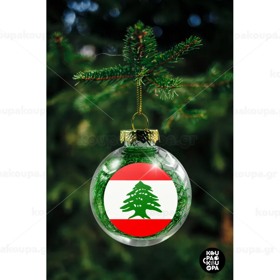 Lebanon flag, Transparent Christmas tree ball ornament with green filling 8cm