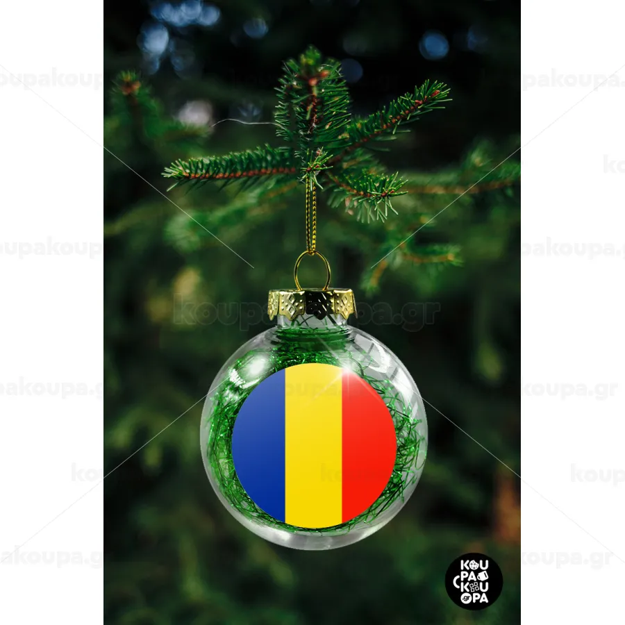Romania flag, Transparent Christmas tree ball ornament with green filling 8cm