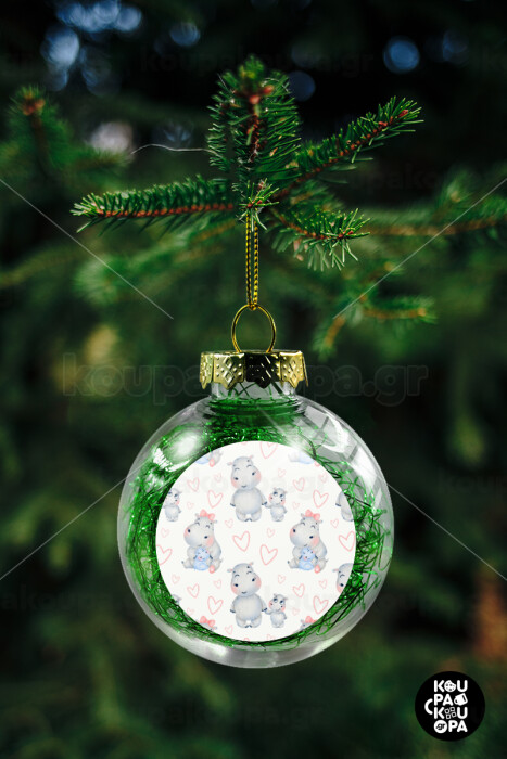 Hippo, Transparent Christmas tree ball ornament with green filling 8cm