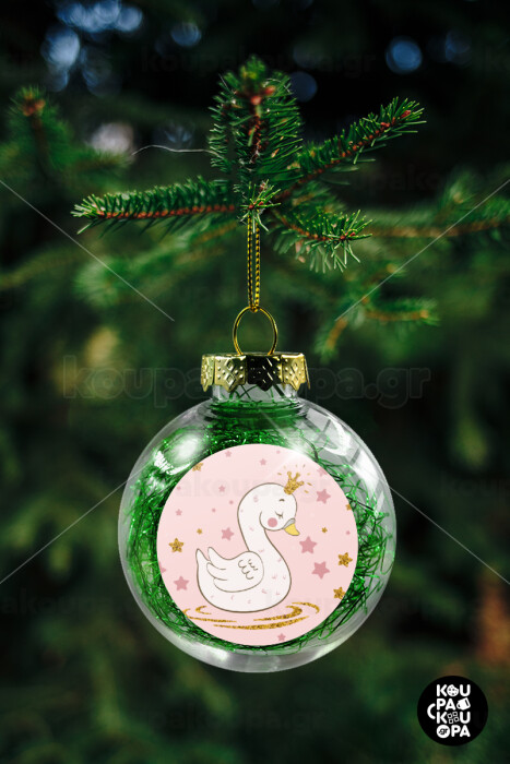Crowned swan, Transparent Christmas tree ball ornament with green filling 8cm