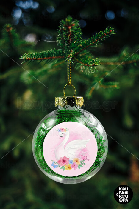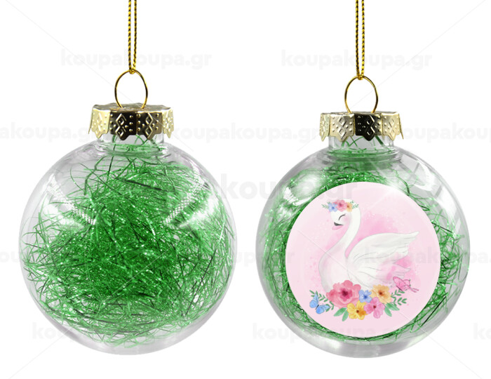 White swan, Transparent Christmas tree ball ornament with green filling 8cm