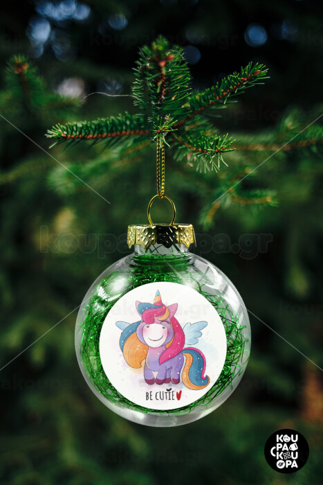 Pink unicorn, Transparent Christmas tree ball ornament with green filling 8cm