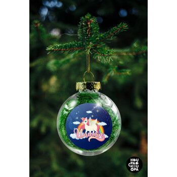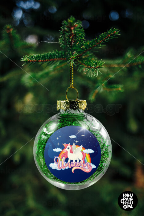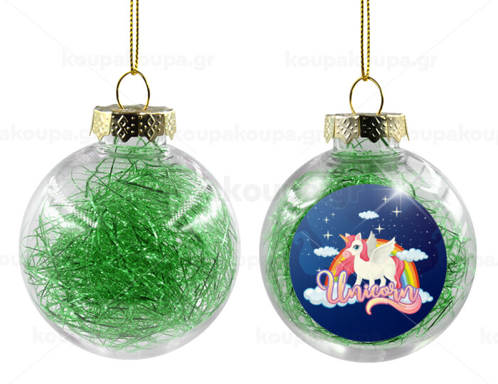 Μονόκερος, Transparent Christmas tree ball ornament with green filling 8cm