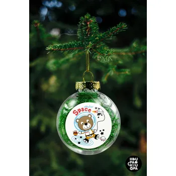 Kids Space, Transparent Christmas tree ball ornament with green filling 8cm