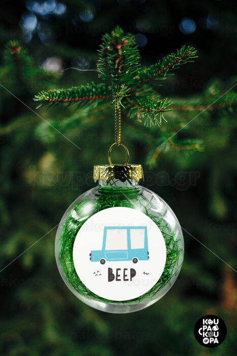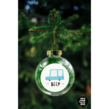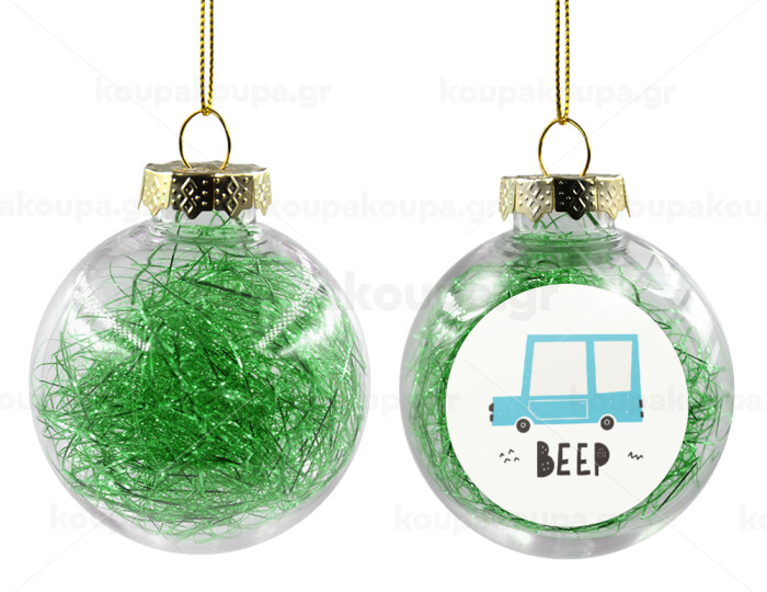 Car BEEP..., Transparent Christmas tree ball ornament with green filling 8cm