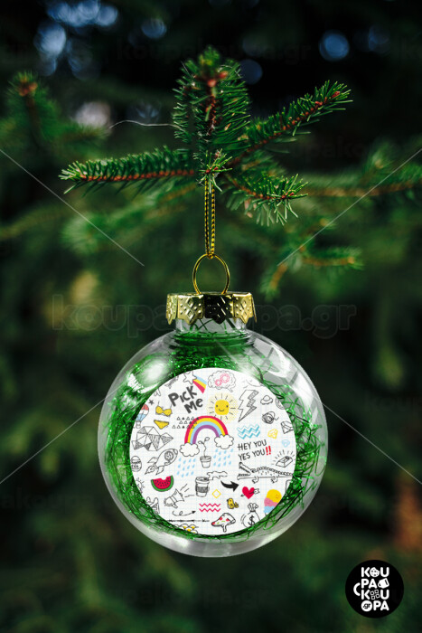 Doodle kids, Transparent Christmas tree ball ornament with green filling 8cm