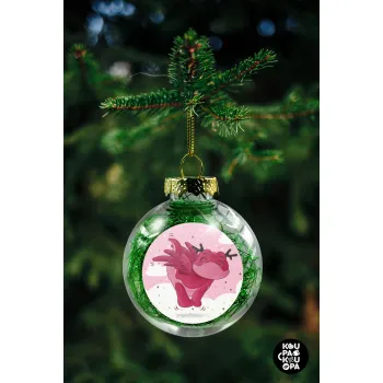 Flying Dyno, Transparent Christmas tree ball ornament with green filling 8cm