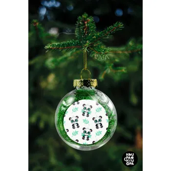 Panda, Transparent Christmas tree ball ornament with green filling 8cm