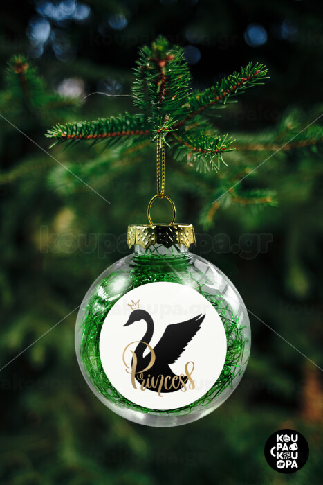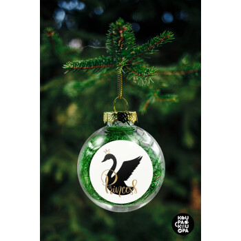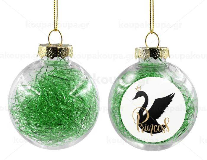 Swan Princess, Transparent Christmas tree ball ornament with green filling 8cm