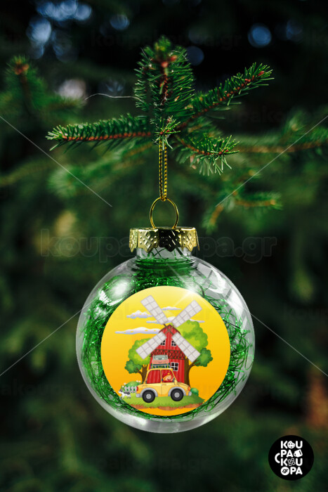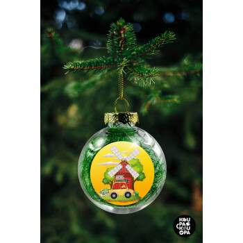 Toy car, Transparent Christmas tree ball ornament with green filling 8cm