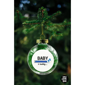 Baby is Loading BOY, Transparent Christmas tree ball ornament with green filling 8cm