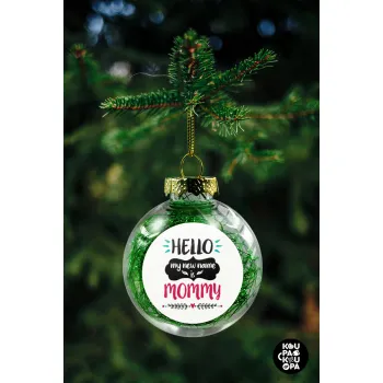 Hello, my new name is Mommy, Transparent Christmas tree ball ornament with green filling 8cm